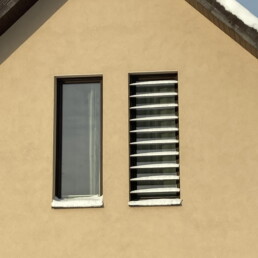 - Uzstādāma neregulējama horizontāla sistēma loga ailē, ēkas fasādē, kas stiprinās pie loga rāmja;